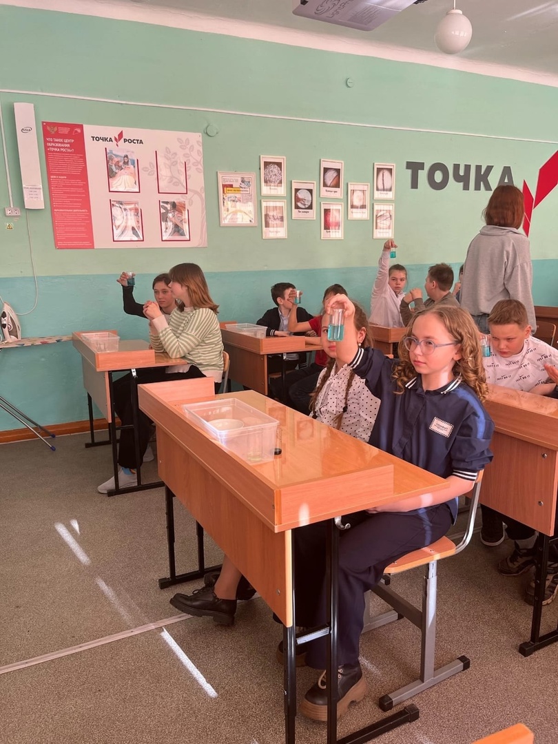 Сегодня, 8 апреля, ребята 4 А класса побывали в школьном центре естественно-научной и технологической направленности «Точка роста», где активисты –старшеклассники предложили ребятам провести эксперимент.